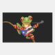 Tree Frog Playing Puerto Rico Flag Guitar Black Rectangular Sticker