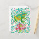 A delightfully colourful tree frog surrounded by flowers and stars.