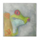 Cute treefrog poking his head out from behind a stump. Light grey textured background creates a swampy atmosphere. Done in watercolor.