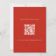 Back: red background. Add your website url to the QR code for RSVP and/or party details.
