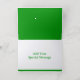 This green foil card is a great way to send Merry Christmas greetings. The card features a modern tree design and is shown in real gold foil. Customise with your desired text on the front and a special message inside the card. Use the template to personalise.