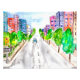 Tree-lined Boulevard City Buildings Watercolor Photo Print