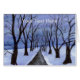 A tiny watercolor and ink winter landscape of a tree lined road in the snow under the evening stars. Painted for Art-O-Mat.