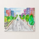 Tree Lined Street Watercolor Ink Illustration Art Jigsaw Puzzle