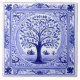 Tree Mediterranean Rustic Blue and White Folk Art Tile