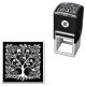 Self-inking stamp in a stylised, floral, tree of life design in white on a solid background