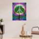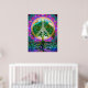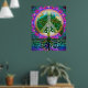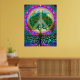 Tree of Life Peace is a very brightly colored tree of life in psycadelic colors featuring a peace sign in front of earth and an intricate roots system. It was created by Amelia Carrie who grew up during the outskirts of San Francsico during the 60's and 70's and was thus influenced by hippie artwork for this piece.