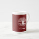 Tree of Life White Silhouette on Burgundy Monogram Bone China Mug