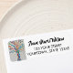 This decorative return address label features a colourful tree of life on a pale grey background with stylish typography.