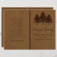 Tree on wood brown woodland wedding ceremony and party folded program featuring three conifer trees on wood grain and text in brown. This modern and stylish wedding design is a completely customisable template and is part of a wedding set perfect for a rustic woodland forest wedding . You will have to fold it in the centre. Choose only this type of paper-value as it folds well. Note that there is not real wood just a PRINTED image.