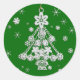 Tree Ornament and Snowflakes Over Green Classic Round Sticker