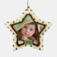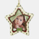Tree Pattern Baby's First Christmas Star Red, Green and Aged Winter White Ornament. Personalise with your little one's name and information as well as the year.