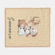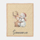 Tree pattern reindeer snowman orange beige name fleece blanket