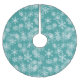 Holiday tree skirt shown in a Teal colour with a festive snowflakes print design.