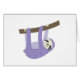 A happy sloth hangs from a tree branch in this light hearted graphic. This sloth is especially special because he doesn't have fur - he has a lovely purple print!