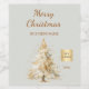 A soft sage green background on the front decorated with a watercolored hand-drawn pine tree covered in snow.