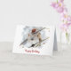 This birthday card features a very cold American Tree Sparrow sitting on a branch, all fluffed up to stay warm during a snowstorm full of blowing drifting snow. His distinctive red cap and breast spot identify him as this species of sparrow. All text can be customised to suit your needs.