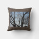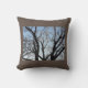 A Brown Throw Pillow with a Picture of a Tree and Sky on it.