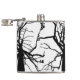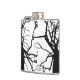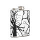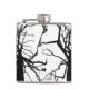 This hip flask features an artistic, black and white abstract pattern of the top of a tulip tree in winter with bare branches in silhouette.