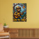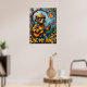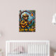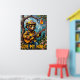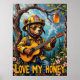 This dynamic painting presents a bear, the "Tree Top Troubadour," sporting a firefighter helmet and sunglasses, masterfully playing an acoustic guitar while sitting on a sturdy branch in a sun-dappled forest. A jar of honey hangs above, catching the sunlight. The thick, expressive brushwork adds a tangible quality to the scene, making the "Love My Honey" message resonate with the peaceful charm of the forest.