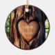 Romantic Couple Keepsake Circle Ceramic Ornament with a Heart Carved Heart and Personalised Lover's Names on a Tree Trunk. Perfect for wedding anniversaries, Valentine's Day, or a beautiful keepsake.