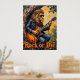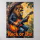 This striking painting captures a majestic lion, adorned with sunglasses and a leather jacket, fully immersed in playing an electric guitar while sitting within the natural embrace of a tree trunk. The surrounding rough bark and hints of green leaves add to the wild aesthetic. The artist's use of bold, textured brushstrokes emphasises the raw power and "Rock or Die" attitude of this unexpected king of rock