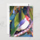A picture of a Brazilian Cardinal outdoors in nature. Red, white, and blue grey feather wild bird. Green leaves in the background landscape. Digital photo.