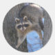 Taking a break in it's winter hibernation, a racoon is caught balancing between tree trunks.