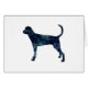 Treeing Walker Coonhound hound hunting dog breed side view silhouette filled with black watercolor. This silhouette can also represent: TWC, Redbone, American English Coonhound, Redtick, Pointer, Austrian Pinscher, Catahoula Leopard Dog, Leopard Hound, Artois, Braque d'auvergne, Norwegian Hound, Dunker, Estonian Hound, Finnish Hound, Hanover Hound, Hanoverian Hound, Hanoverian Scenthound
