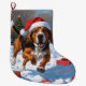 Treeing Walker Coonhound Snow with Christmas Hat Large Christmas Stocking