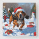 Treeing Walker Coonhound Snow with Christmas Hat Square Wall Clock