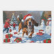 A spirited Treeing Walker Coonhound runs happily through the snowy winter scene, wearing a festive red Christmas hat. This lively design highlights the breed’s sleek coat, athletic build, and determined personality while capturing the warmth and joy of the holiday season. A heartwarming winter moment full of festive cheer.