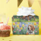 A cheerful dog sits peacefully on lush green grass, surrounded by colourful spring blooms under a soft blue sky. This digital oil painting captures a serene moment with expressive brushstrokes, warm colours, and a sense of gentle joy.