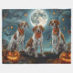 Unleash the spooky spirit with this eerie Halloween design featuring a pack of dogs under a dark, moonlit sky, surrounded by flying bats and glowing pumpkins. Perfect for those who love a touch of frightful fun with their furry friends!