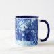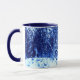 Coffee mug in a Winter scene of snow-covered trees with a winter woodland background - digitally enhanced photography in shades of cobalt blue