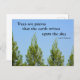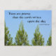 This beautiful photographic postcard features Kahlil Gibran's quote, “Trees are poems that the earth writes upon the sky,” paired with a stunning photograph of green pine trees reaching towards a clear blue sky. It’s the perfect blend of poetry and nature, capturing the serene beauty of the outdoors.