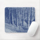 A photo of a trees standing at the edge of the river Taff at Bute park Cardiff, treated with a cyanotype effect.
