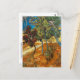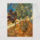 A fine art post-impressionist postcard, Trees in the Asylum Garden (1889), an oil painting by the Dutch artist Vincent van Gogh (1853-1890). A landscape of trees at the entrance to the asylum in Saint-Remy, France, where Van Gogh voluntarily committed himself in May 1889 until May 1890.