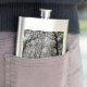 The product is a good size and came exactly as it was pictured. The lid is not attached to the flask, which could be dangerous on drunken nights... The print came out surprisingly well and looks very sharp. Would definitely recommend.