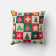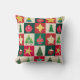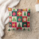 Trees, ornaments, and stars on red, green and ecru squares creates a cute and fun throw pillow with a mid-century aesthetic. Perfect for your holiday home.