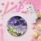 An pretty abstract art design of tree leaves in purple and green.