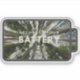 A battery shaped sticker with a beautiful view of the top of a forest with the reminder to recharge your own battery.