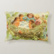 The cushion is small to medium sized. It can be washed. It is well constructed. The material used is pleasant and feels decent quality. It has a very slight plush feel which is good. It is well labelled and its care clearly stated. Theres nothing not to like about it. All in all a good item. The deduction of one star overall is due to long delays in delivery to the UK. It's not clear if this was due to Zazzle or somewhere else in the chain as I did not receive status updates of dispatch or progress. I cannot comment anymore on that other than to say that was our experience but it may not be the same for you. The printing was surprisingly close to what we were expecting. Its an art piece and on material so its hard to assess the precision of printing but it seems close to the original. The soft lines are reproductions of the original. The colour is a fair reflection of the painting. This was printed in the US and it looks like US quality. No issues.