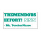 This encouraging rubber stamp design features the positive message "TREMENDOUS EFFORT!" and a personalised teacher's or educator's name. It also features decorative check mark icons. It could be used by a school teacher, educator, instructor, or tutor when grading student work, to acknowledge that a student has done an exceptional job.
