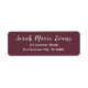 Trend Colour Dark Red Wine With White Font. Create a modern and stylish statement with our customisable return address labels featuring a cute calligraphic -handwritten font for a personalised touch. The address can be personalised as needed.