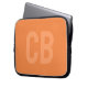 Modern and stylish Laptop Sleeve with customisable monogram in a minimalist light orange font.