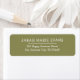 Trend Colour Olive Green. Create a modern and stylish statement with our solid coloured customisable return address labels featuring a cute handwritten font for a personalised touch. The address and divider can be personalised or removed as needed.