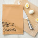 This modern and stylish kitchen towel with decorative lineart element in tattoo style and customisable name in classic black script font, adds a vibrant touch to your kitchen attire.