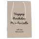 Elevate your gifting game with our modern and stylish happy birthday gift bag, complete with customisable text in a cute handwritten looking font and signature.