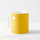 Embrace style and personal touch with our Trendy Sunburst Yellow Customisable Mug. On one side, your name takes centre stage in an elegant script font for a unique and sophisticated look. On the other side, the heartwarming message 'Wishing you a great day filled with joy and positivity!' greets you, adorned with a heart symbol, adding a touch of warmth to your day. This thoughtful message is also customisable, allowing you to keep, modify, or remove it as desired.